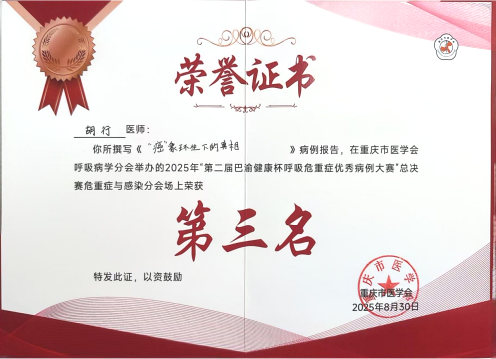 【喜訊】我院呼吸與危重癥醫學科在2025年重慶市醫學會“巴渝健康杯”病例大賽中斬獲佳績!