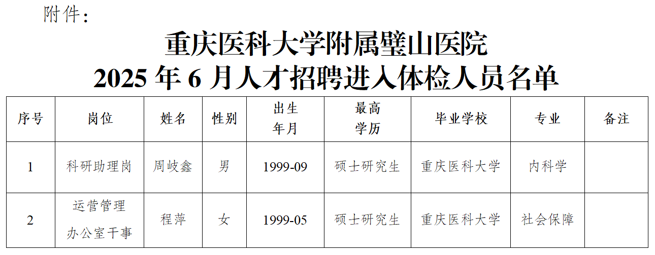 58名!重慶醫(yī)科大學(xué)附屬璧山醫(yī)院