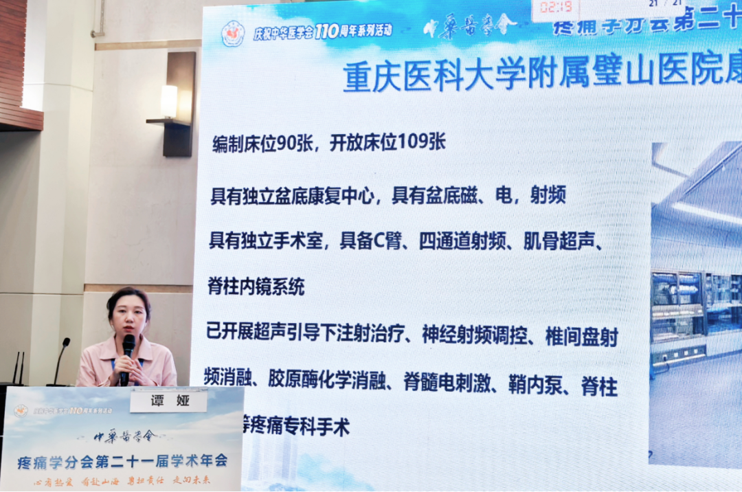 在年會“重慶疼痛醫(yī)學分會場”專題論壇上,我院譚婭主治醫(yī)師代表團隊作了題目為《盆底磁聯(lián)合奇神經(jīng)節(jié)射頻治療慢性盆腔痛》的專題報告。該研究基于我院康復醫(yī)學科、疼痛科近年來積累的臨床病例數(shù)據(jù),通過嚴謹?shù)碾S訪觀察和統(tǒng)計分析,探討了一種復合干預策略對于慢性盆腔痛患者的治療效果及生活質量改善情況。此次大會發(fā)言,不僅是科室臨床經(jīng)驗的一次高質量輸出,更是我院疼痛診療水平獲得國家級學術平臺認可的重要標志。它彰顯了科室在盆底疾病微創(chuàng)介入治療方面的技術優(yōu)勢與學術影響力。