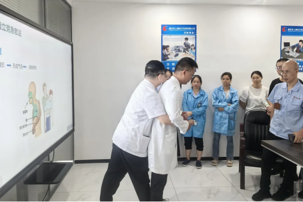 為全面增強(qiáng)轄區(qū)企業(yè)員工的安全防范意識(shí)與應(yīng)急處理能力,營(yíng)造更優(yōu)質(zhì)的營(yíng)商環(huán)境。8月20日,青杠醫(yī)院組織重醫(yī)附屬璧山醫(yī)院派駐團(tuán)隊(duì)醫(yī)生,到重慶井上通電子科技有限公司開展了現(xiàn)場(chǎng)急救知識(shí)培訓(xùn)。培訓(xùn)內(nèi)容涵蓋心肺復(fù)蘇、海姆立克急救法要領(lǐng)、操作時(shí)的注意事項(xiàng),以及企業(yè)防暑降溫方法等。活動(dòng)現(xiàn)場(chǎng)還發(fā)放了急救知識(shí)宣傳折頁(yè),方便員工們進(jìn)一步學(xué)習(xí)和鞏固急救知識(shí)。