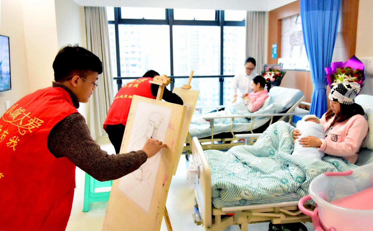 我院攜手重慶師范大學(xué)志愿者,在產(chǎn)科病房開展了“書畫母愛 真情璧醫(yī)”主題活動(dòng),為新媽媽們送上節(jié)日的祝福。來自重慶師范大學(xué)美術(shù)學(xué)院的3名志愿者現(xiàn)場為7對母嬰細(xì)心描畫,留下了媽咪和寶貝生命中的第一張幸福畫卷。志愿者們將畫作送給了媽媽們,并合影留戀。 “畫得真的很好,這是我和寶寶的第一次合影,所有感動(dòng)與美好都留在了這幅畫中,我會(huì)將它好好珍藏。”新媽媽們都說,這是她們過得最溫馨的一個(gè)婦女節(jié)。